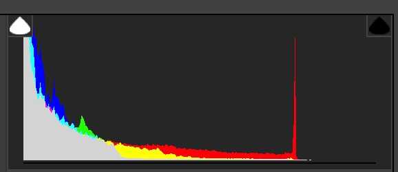 如果直方图在最右边堆积并被切断,说明亮部已经溢出: