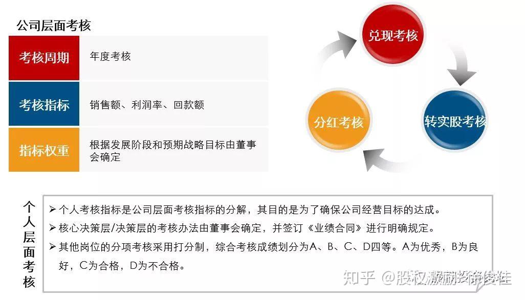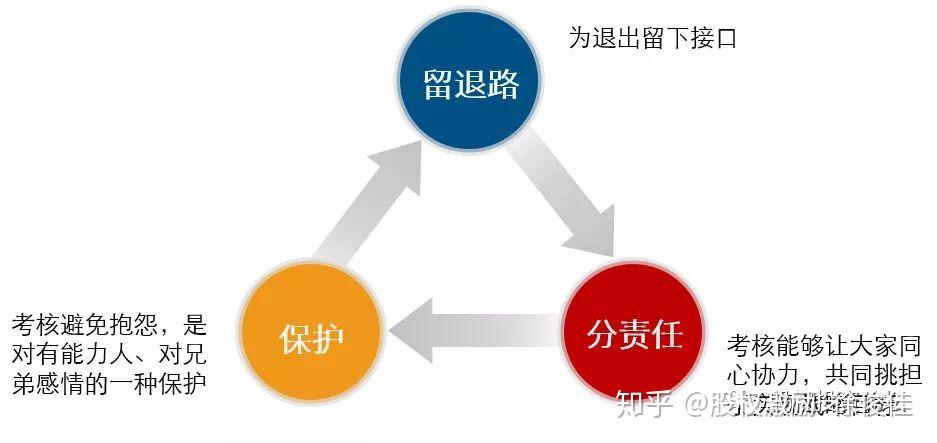 - 留退路:没有一套考核体系,无法定量明确哪些人在吃大锅饭,能力无法跟上公司和团队的发展,通过一定的周期的考核结果提供给公司有哪些无法胜任工作的拟激励对象,进而实施股权激励的调整或退出。