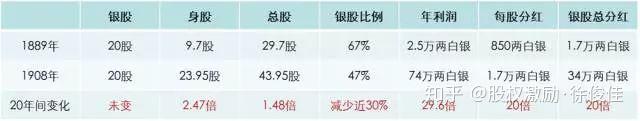 大德通票号1889年银股为20股,身股9.7股;而到了1908年,银股仍为20股,身股却增至23.95股。东家拿的是银股,不参与企业具体管理的。具体经营票号的是一群大掌柜和小掌柜,掌柜靠他的经营才能拿身股,每年可以拿到票号的分红。从1889年到1908年20年间,银股的比例虽没变,但由于整个蛋糕做大了,分红总额增大,股东最终所分得的银子大大增加了。