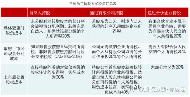 持股载体:个人、有限责任公司、合伙企业(退出时税收不同)