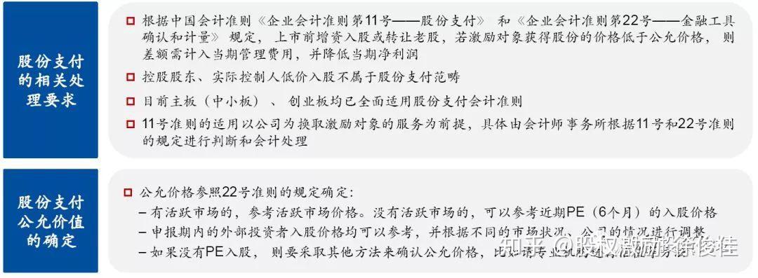 - 员工入股、供应商、客户等低于公允价值入股适用股份支付的会计处理,可能对公司当年的盈利造成较大影响,进而可能影响公司IPO发行的业绩条件