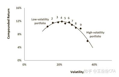 - 低波动股票组合,长期回报可能高于高波动股票组合;
