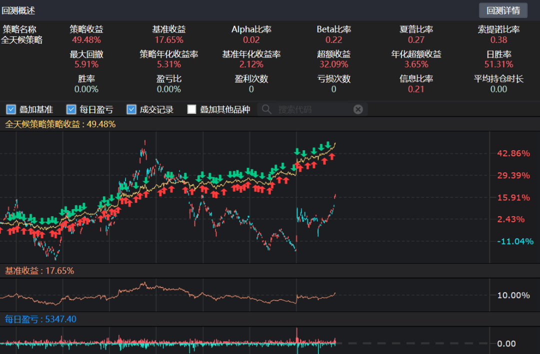 • 回测结果(基础版):年化收益 5.31%,最大回撤 5.91%